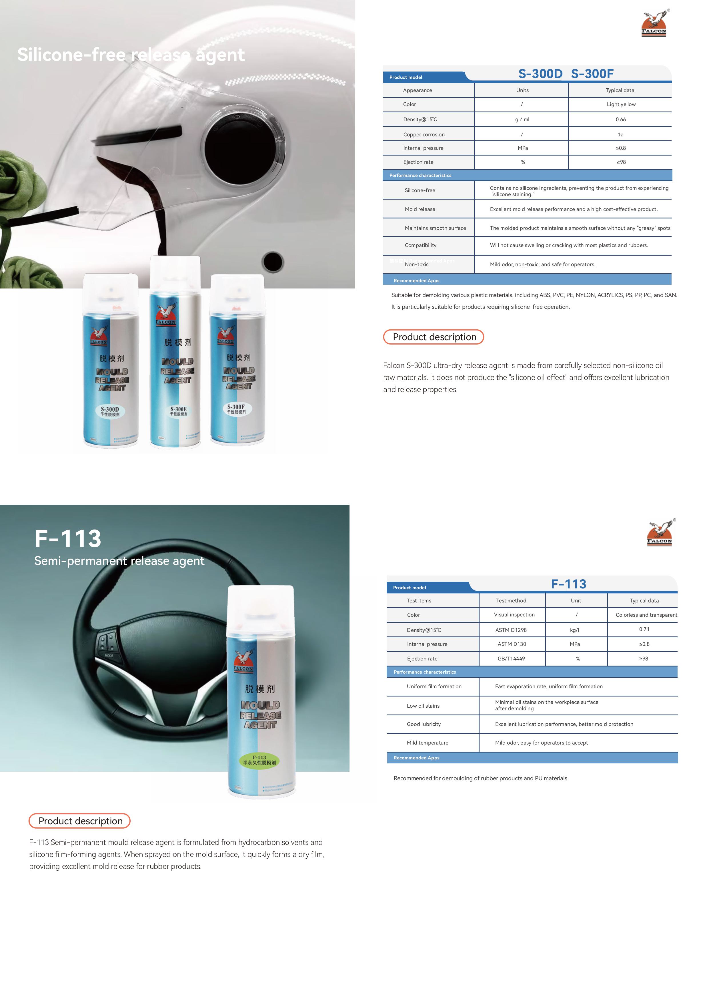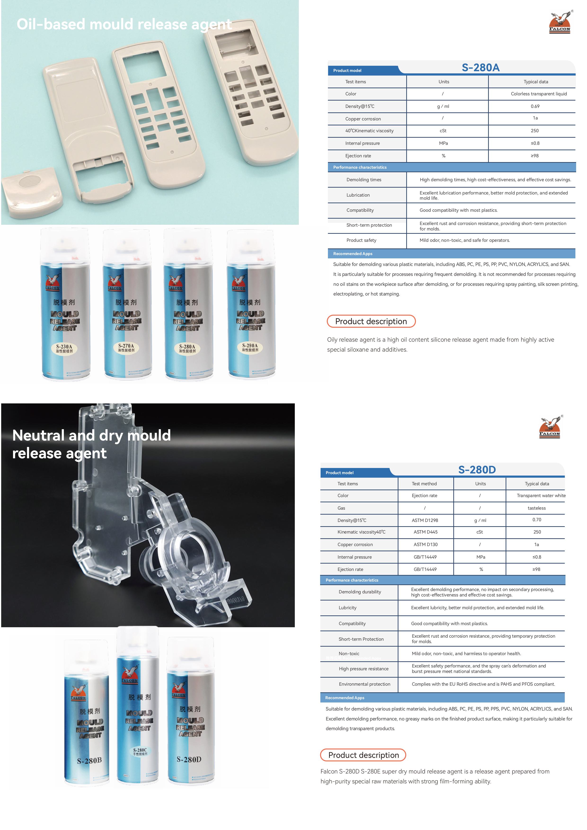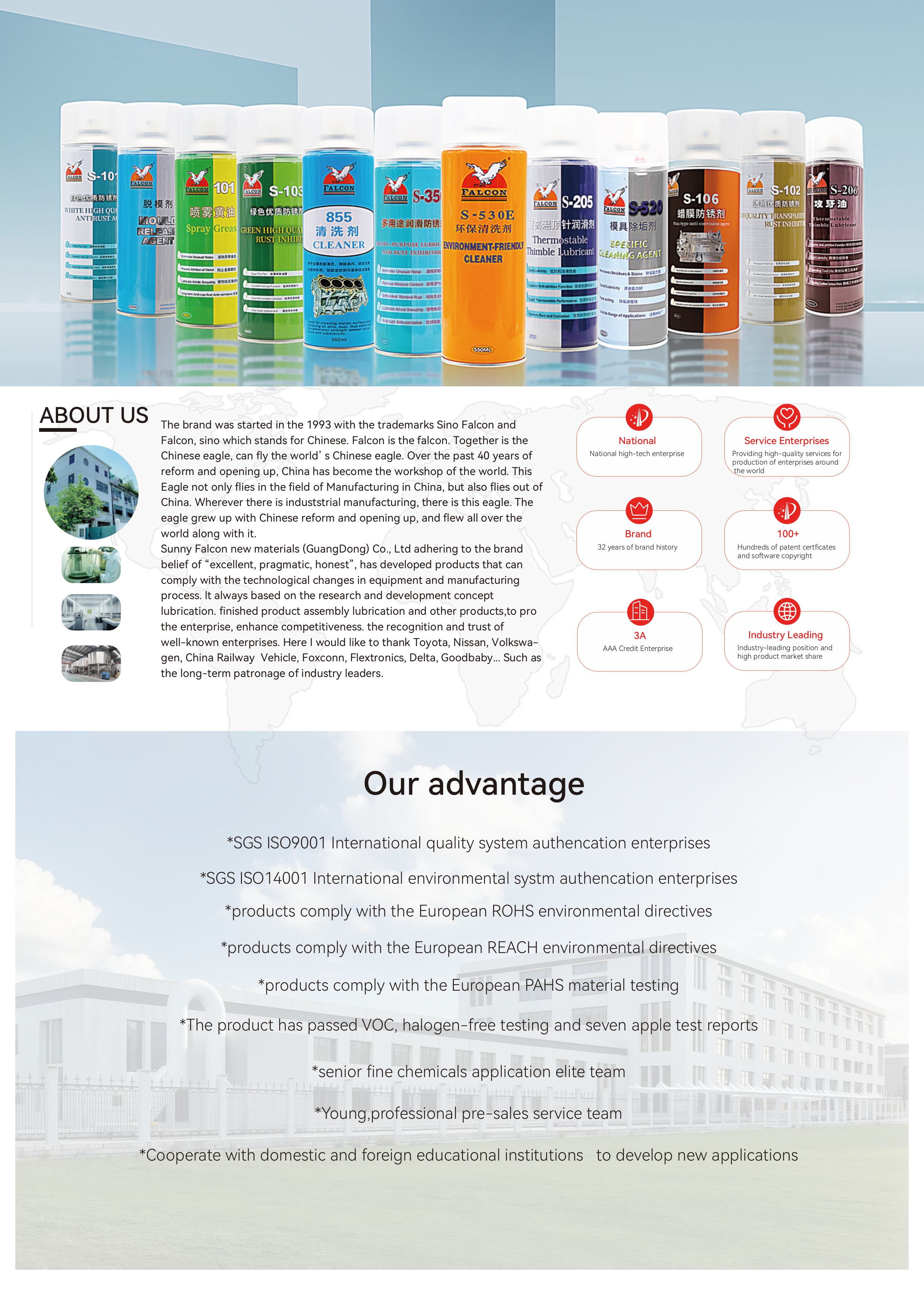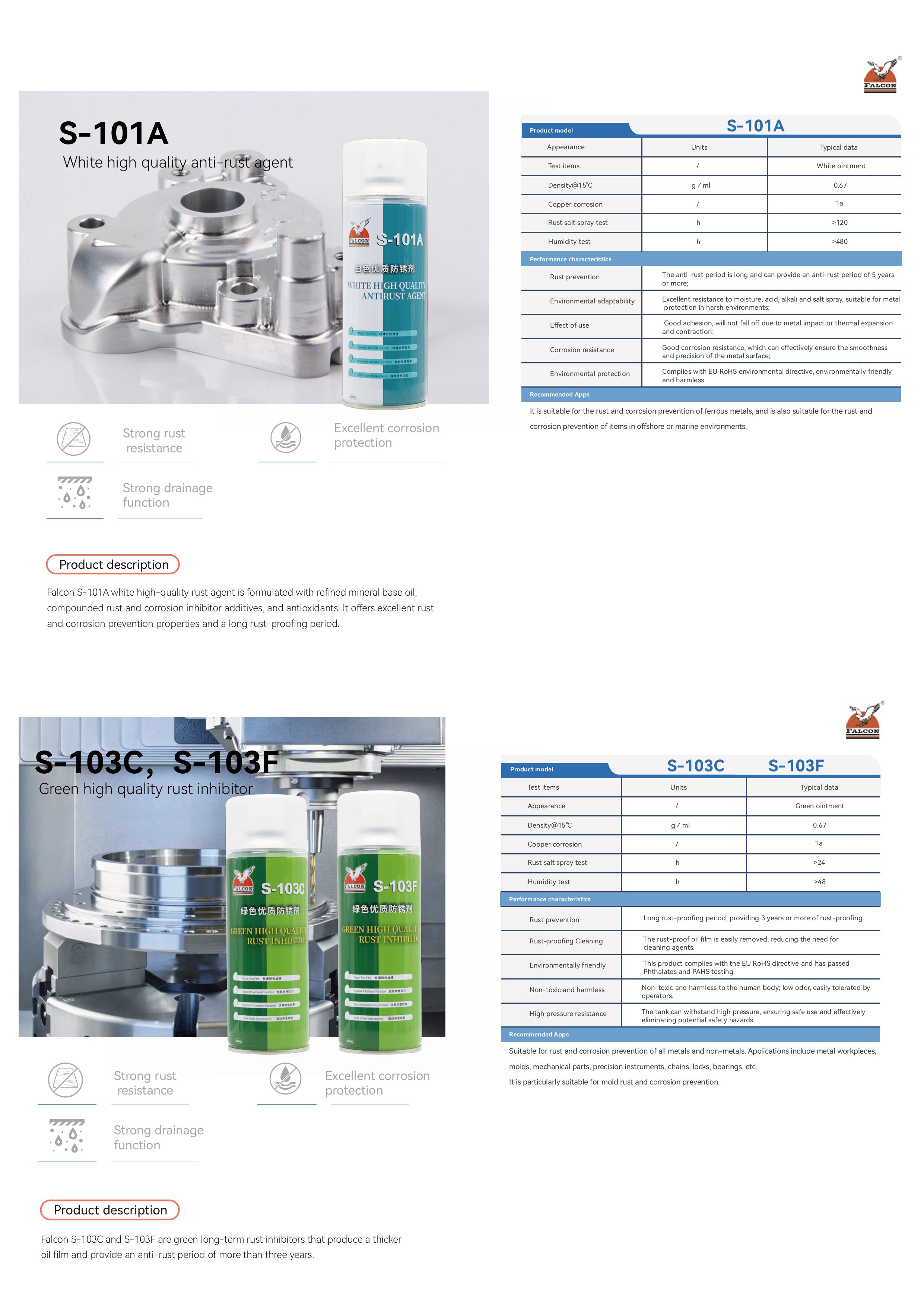 This brochure includes product specifications for four main series: Anti-Rust, Mold Release, Lubricating, and Cleaning.