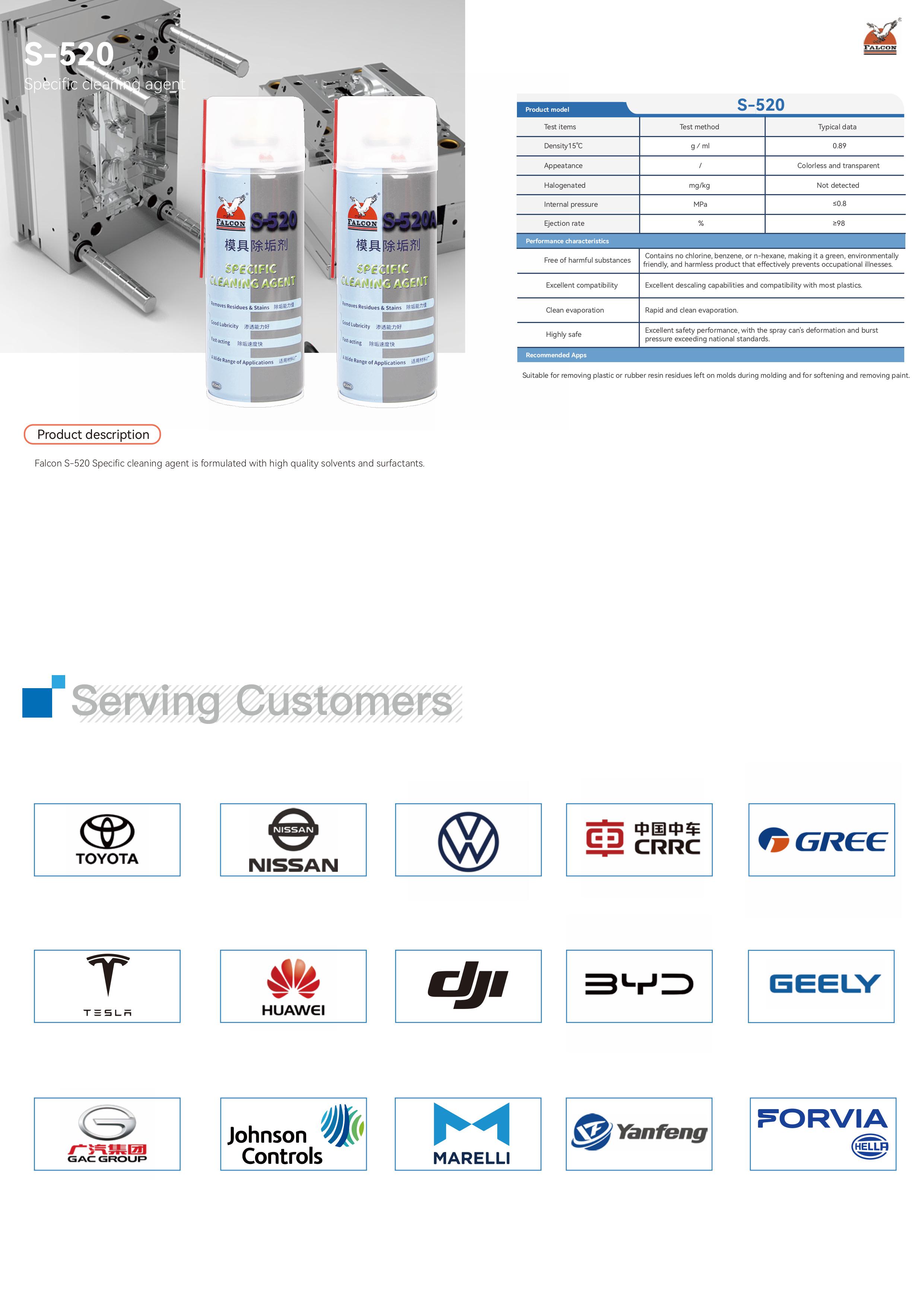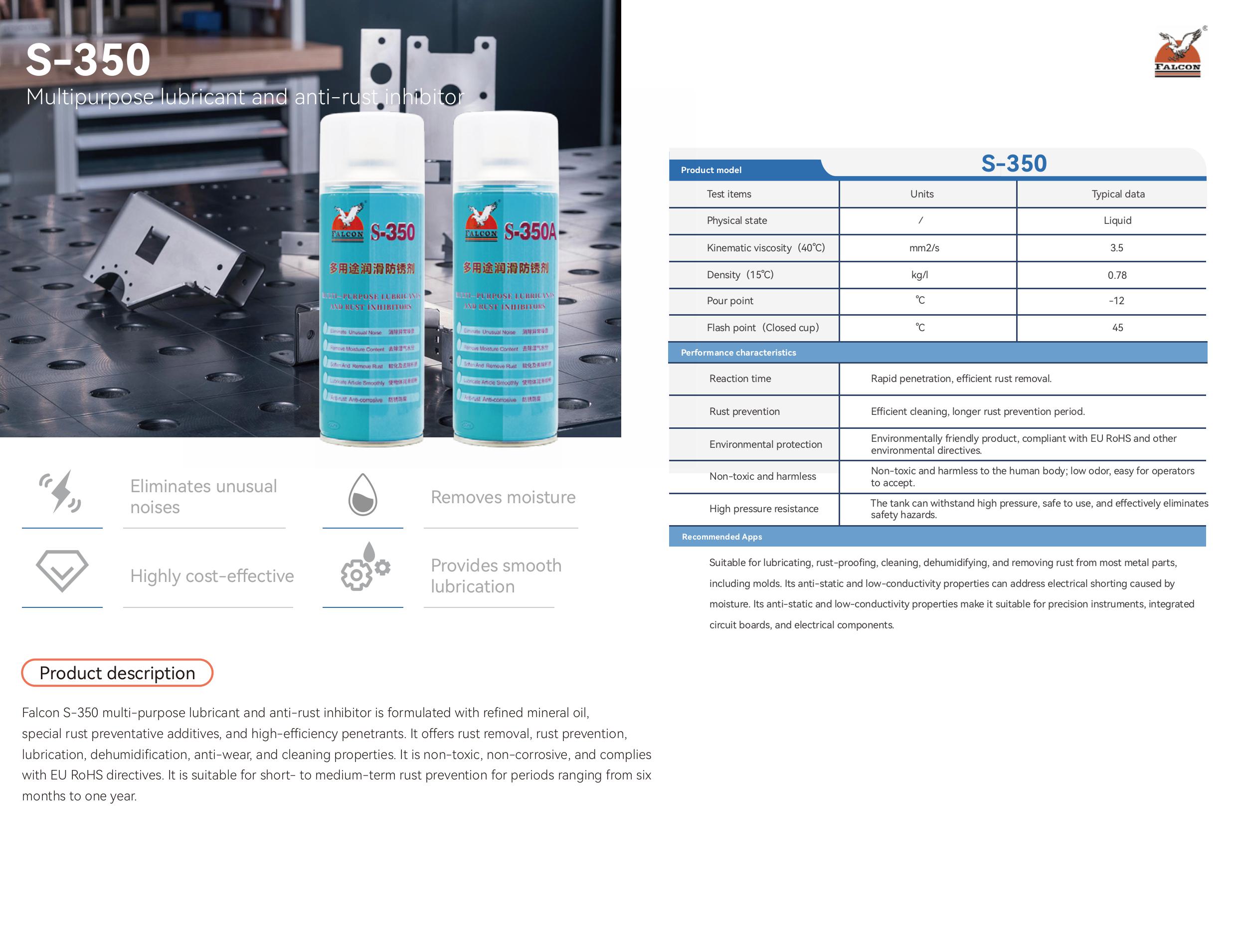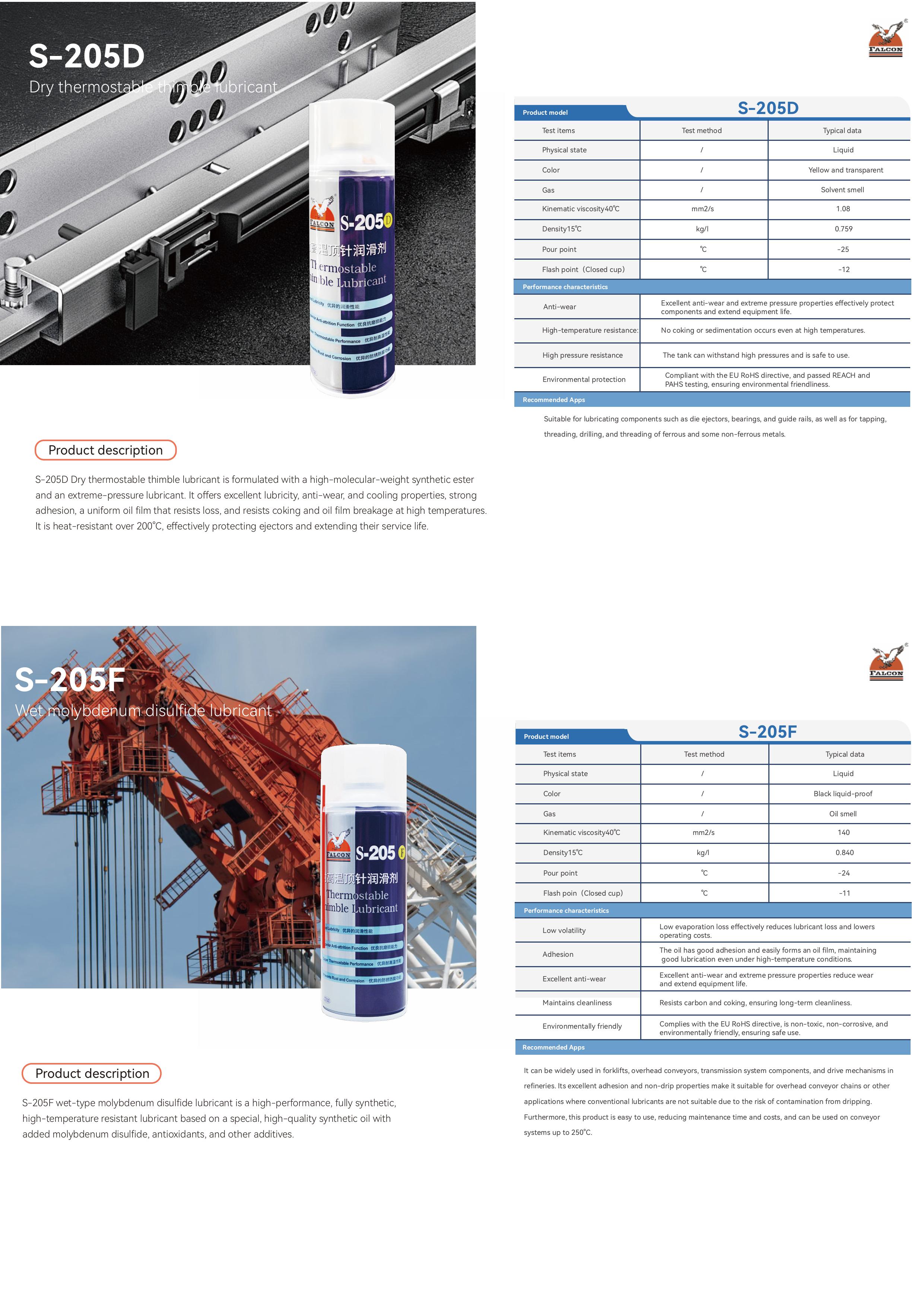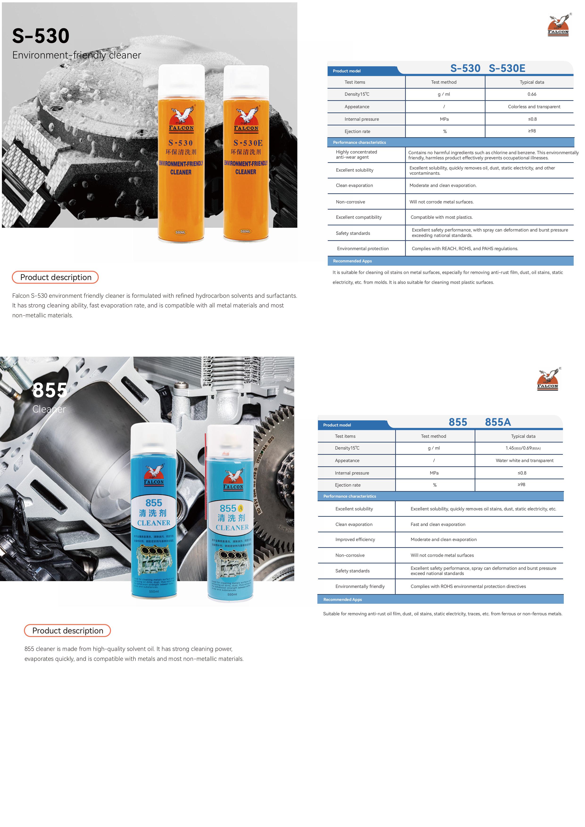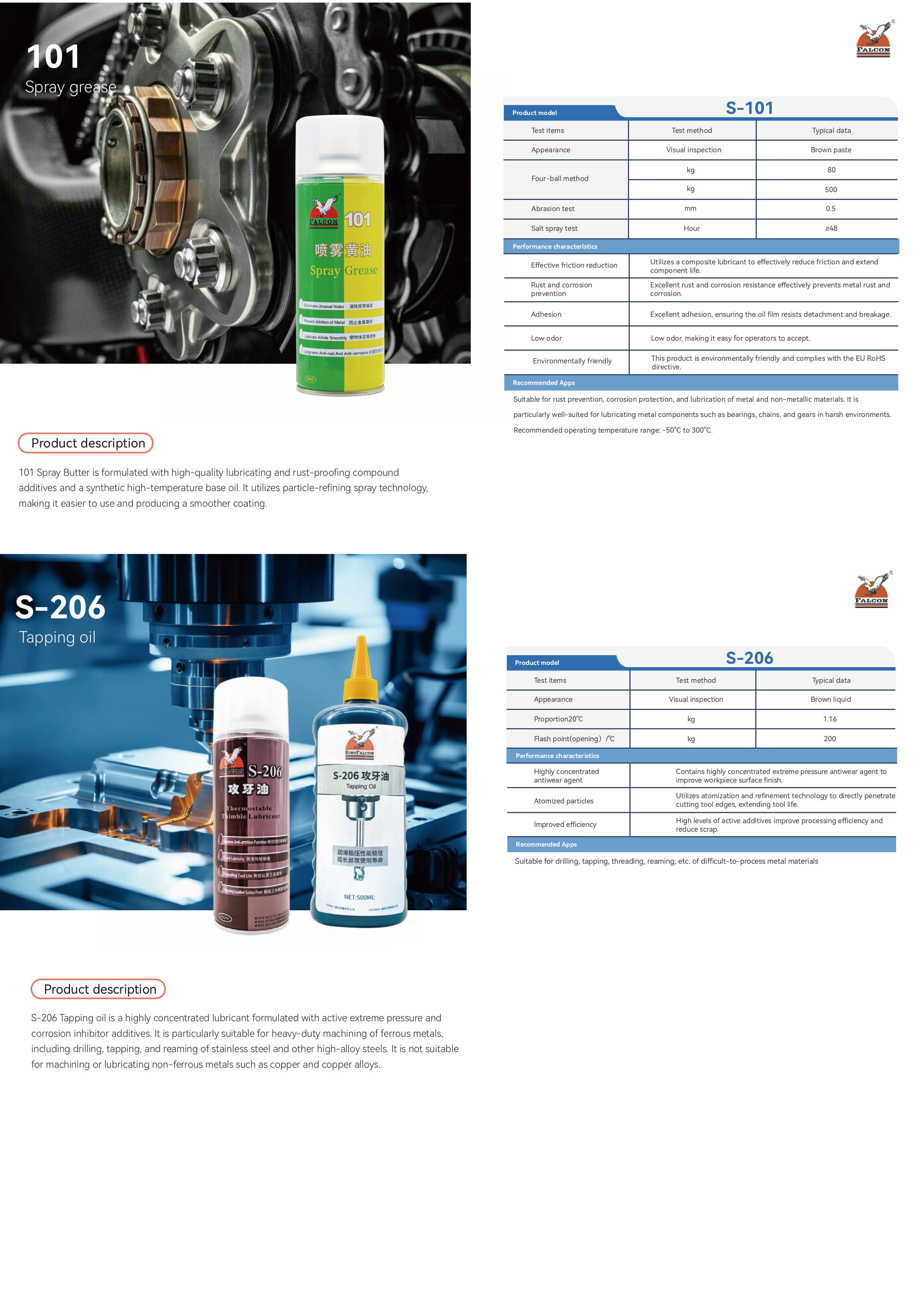 This brochure includes product specifications for four main series: Anti-Rust, Mold Release, Lubricating, and Cleaning.