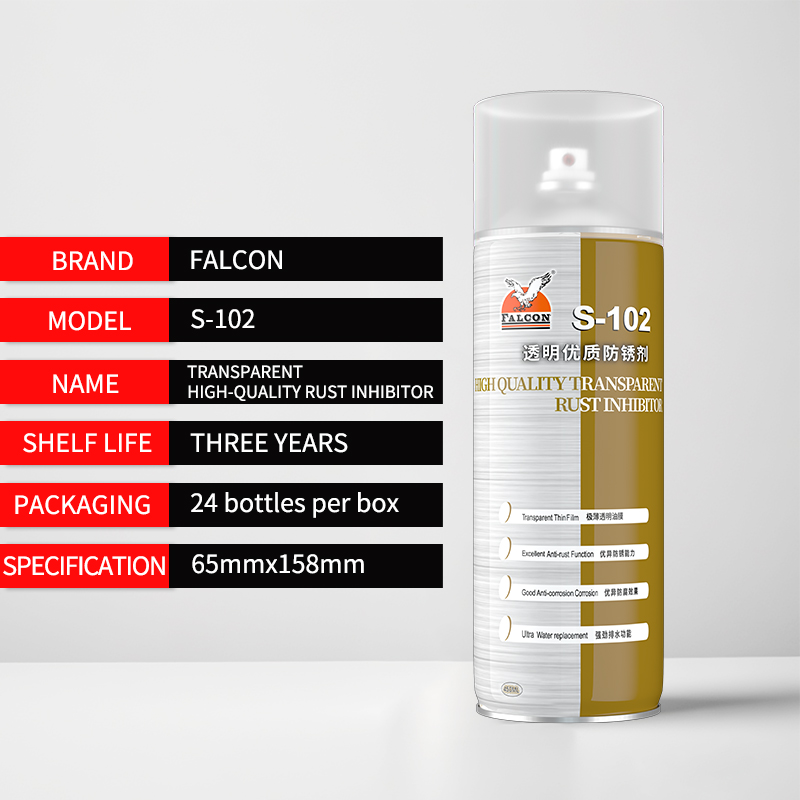 Falcon transparent high-quality antirust agent S-102 is a kind of antirust agent with extremely thin oil film, soft film, fingerprint prevention and rust prevention period of more than three years.