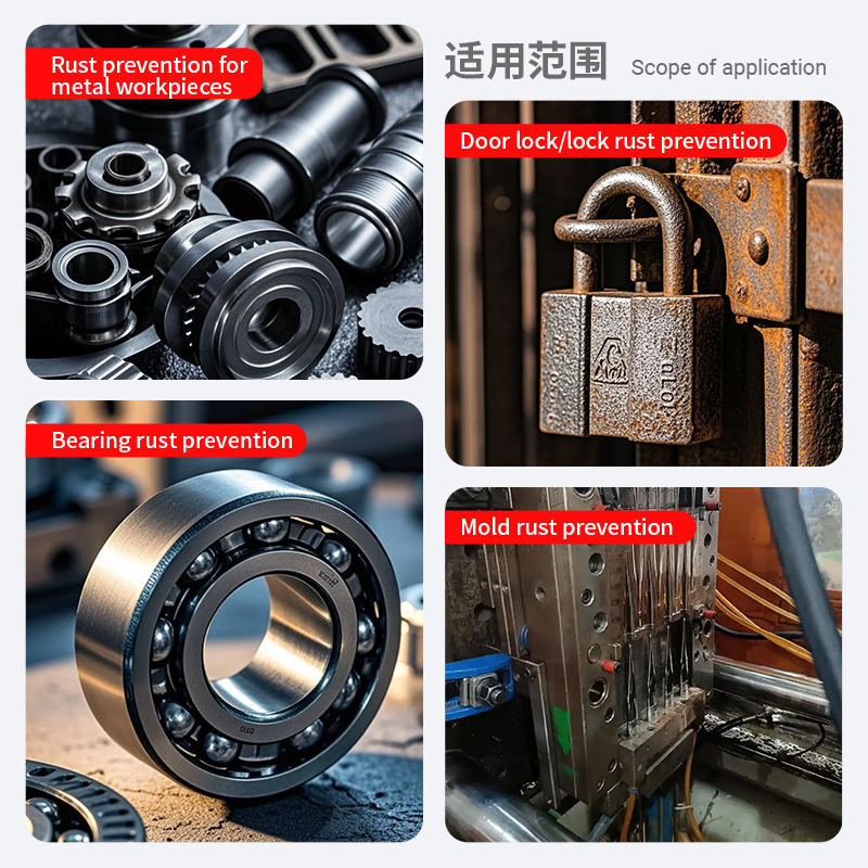 ● Before spraying antirust agent, the surface of the sprayed object should be cleaned with cleaning agent and the surface should be dried. After cleaning, it can be dried by filtered dry compressed air or dried by a dryer at 120-170℃.