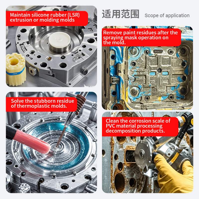 When cleaning the mold slag scale, spray this agent at the slag scale, let the liquid stay and soak for a few minutes, and then wipe it with a soft cloth, or do it three times in a row according to the usual operation, so as to completely clean the slag scale.
