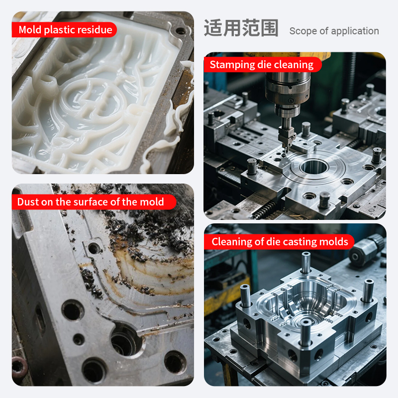 When cleaning the mold slag scale, spray this agent at the slag scale, soak for a few minutes, and then wipe it with a soft cloth, or do it three times in a row as usual, so as to completely clean the slag scale.