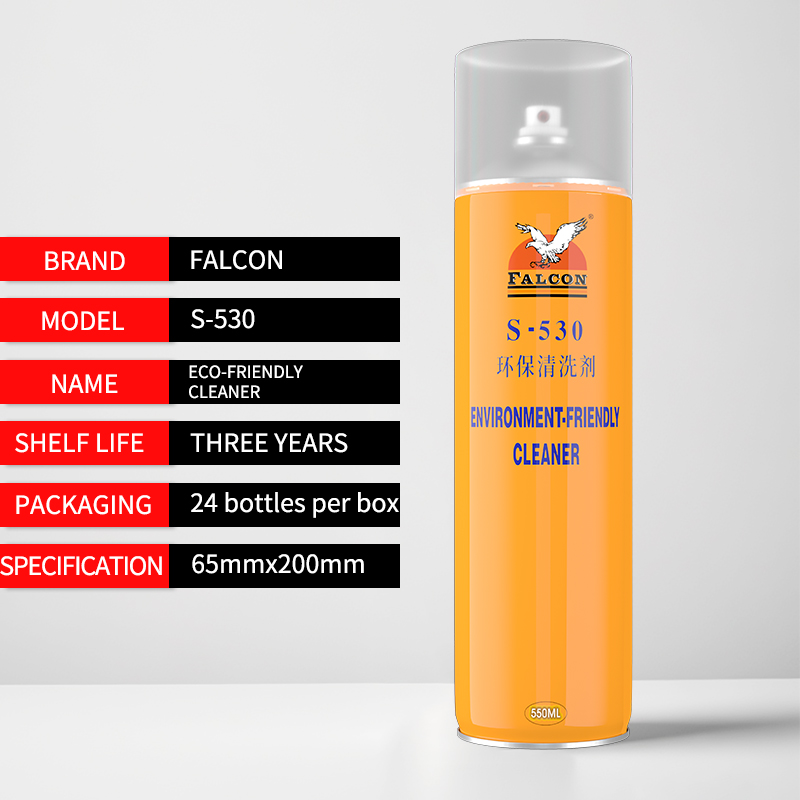 Falcon S-530 environmental cleaning agent is made of refined hydrocarbon solvent and surfactant, which has strong cleaning ability and fast volatilization speed. Compatible with all metallic materials and most nonmetallic materials.