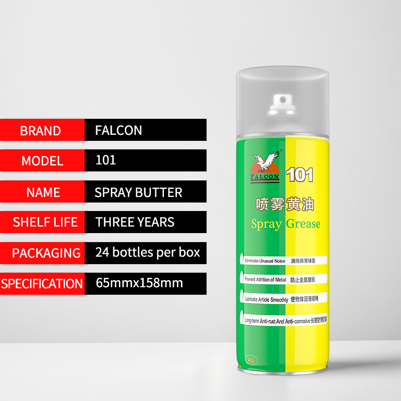 101 spray butter is made of high-quality lubricating and rust-proof composite additives and synthetic high-temperature base oil. By using particle refinement spray technology, the product is more convenient to use and the coating is more delicate.