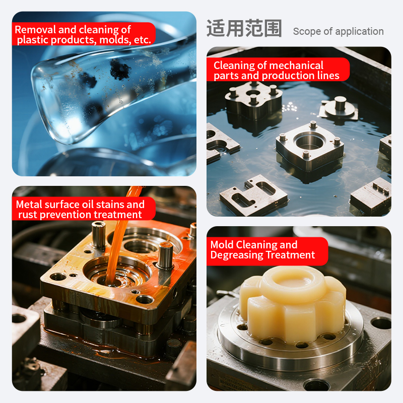 It is 15-20cm away from the surface to be cleaned, and directly sprayed on the surface at an angle of 45 degrees perpendicular or inclined to the surface. The surface of the workpiece is heavily oiled, so it can be left to soak for several minutes and then wiped with a brush or cotton cloth. If it is necessary to penetrate into the interior or pores of the object, it can be connected to the nozzle for use.