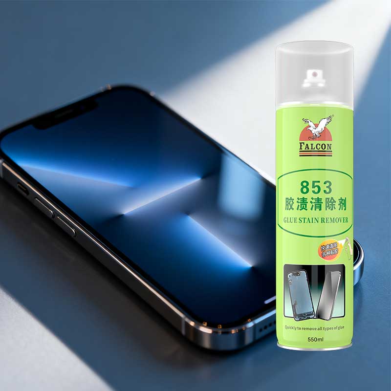对着待清洗界面,垂直喷射;若需深入物件的内部或孔隙可接驳喷管。对于残留较多的,如换偏光片和苹果盖板,可用无尘布覆盖在胶层上喷适量853,30秒后用无尘布擦除,再用鹰牌530清洗干净即可。