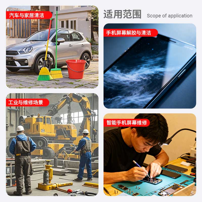 ● 出色的溶解性能,迅速清除OCA溶胶,双面胶,不干胶等粘胶。