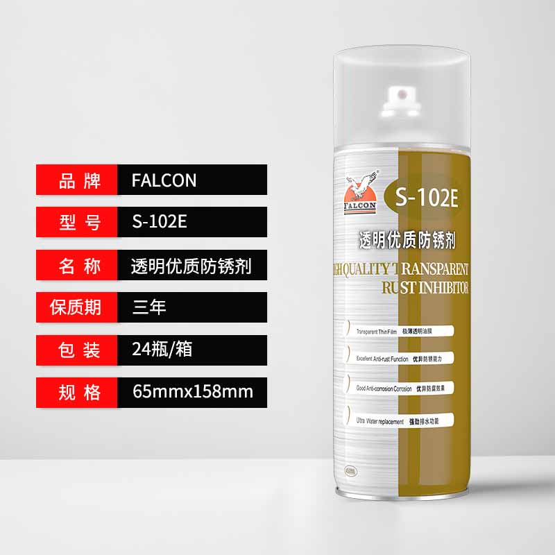 Falcon S-102E透明防锈剂是一款气化性防锈剂,精选精制基础油、优质防锈剂精心调配而成,喷涂在工件表面快速形成透明防锈膜。这款防锈剂不粘污模具,防锈期约1~3个月。