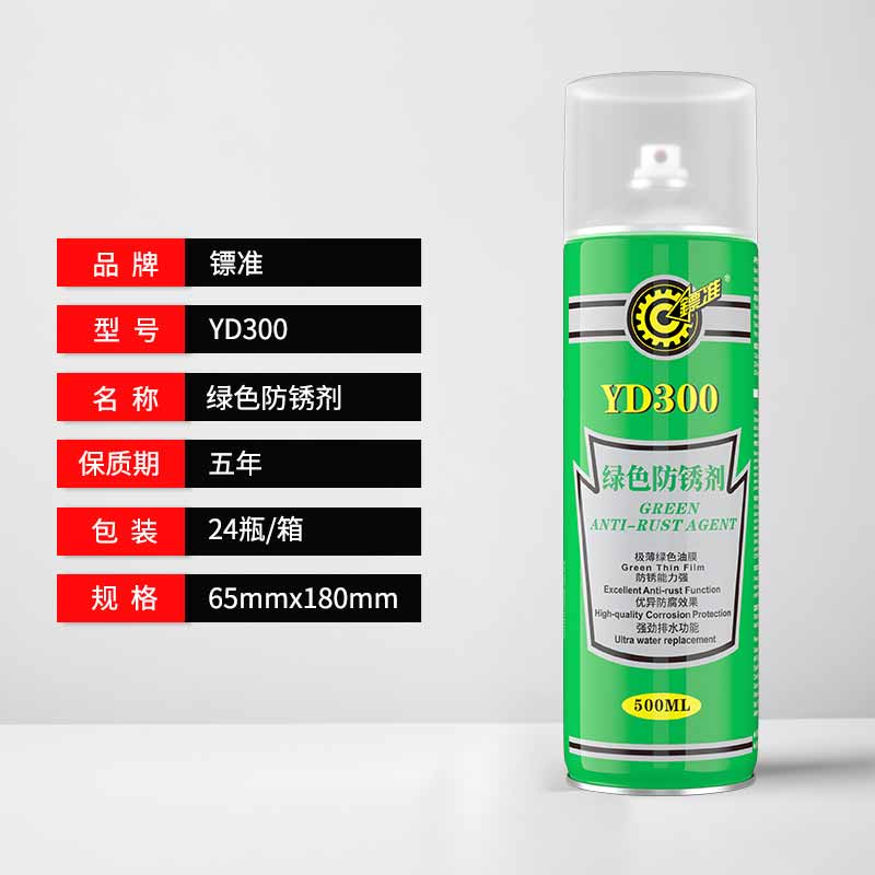 镖准YD300绿色防锈剂是由多种防锈复合剂、成膜剂以及精制矿物油调制而成,防锈防腐性能佳,防锈时间长,抗水淋流失能力强,特殊适用于高盐分、高潮湿等苛刻环境的黑色金属中长期防锈。